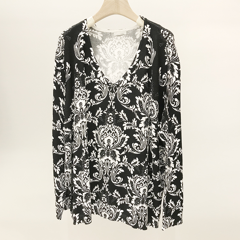 Ladies V neck print pullover knitwear